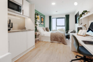 This range of accommodation includes cluster rooms with shared spaces and private studios, with room sizes spanning from 14.5sqm up to 25.8sqm. Each option is designed to offer comfortable, well-proportioned living, giving students the flexibility to choose the setup that best suits their lifestyle.